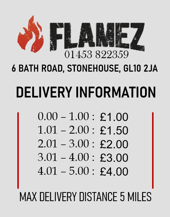 Flamez @Stonehouse Takeaway serves variety of delicious doner kebab and burgers dishes. We’re passionate about delivering hot, great tasting, freshly prepared food to our customers